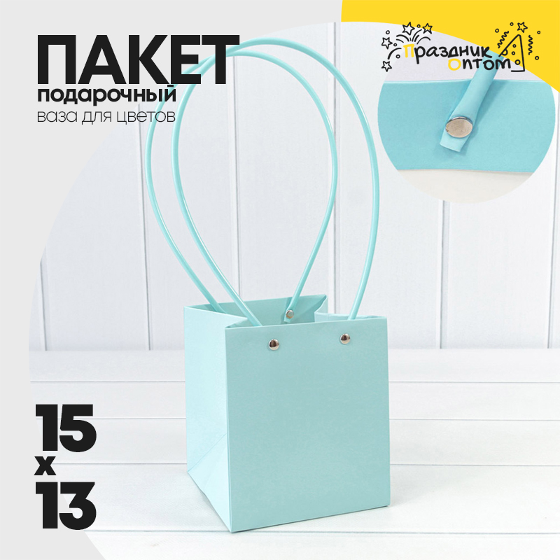 Пакет подарочный 15х13х13см Ваза для цветов (Голубой)