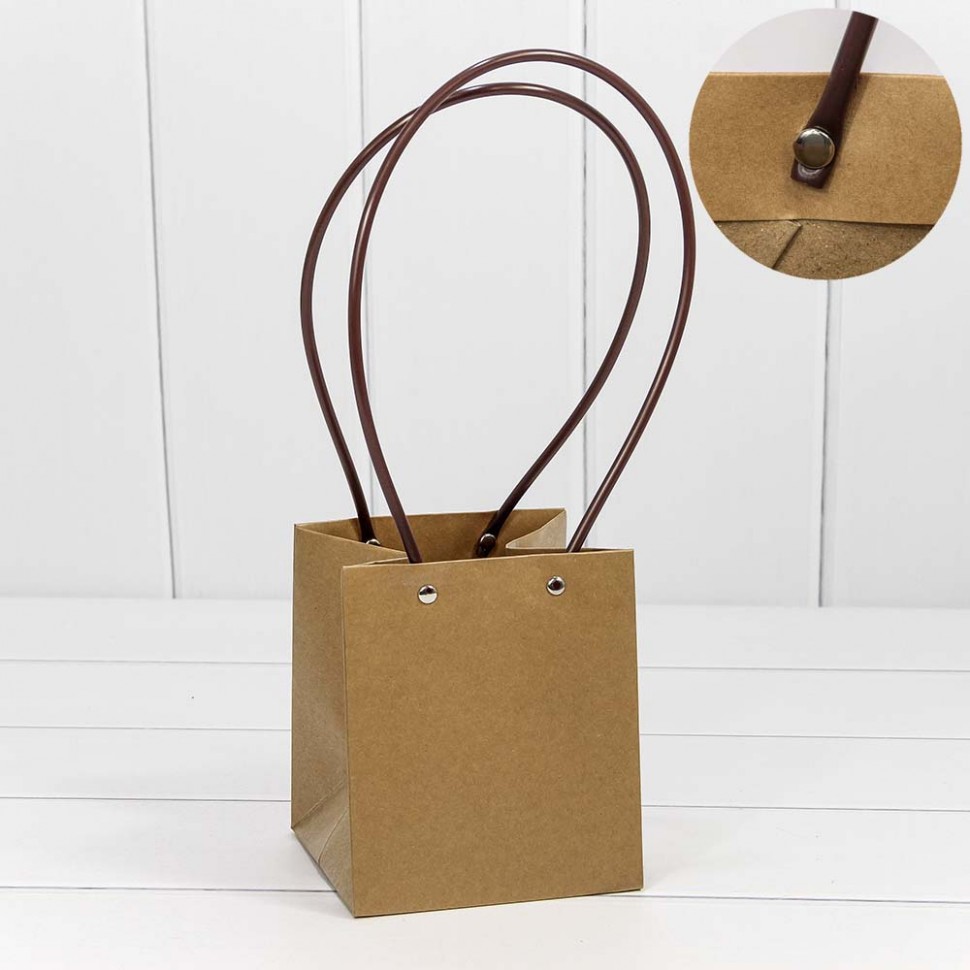 Пакет подарочный 15х13х13см Ваза для цветов (Коричневый, Крафт)