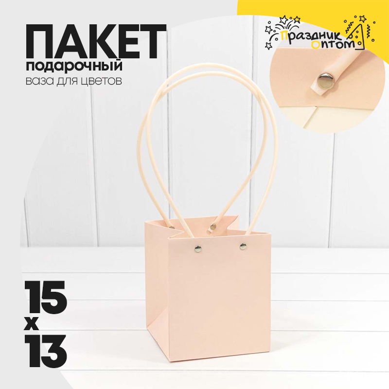 Пакет подарочный 15х13х13см Ваза для цветов (Розовый)
