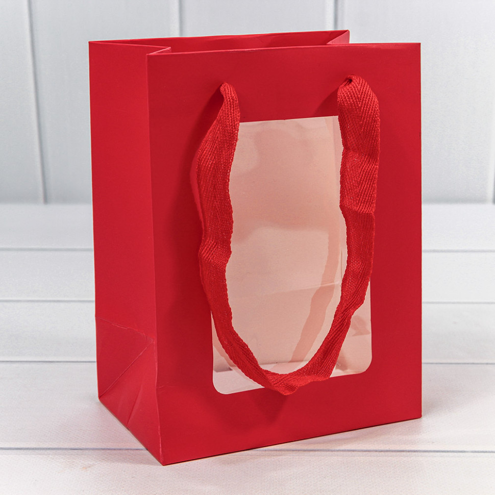 Пакет подарочный 15х20х10см с окошком (Красный)