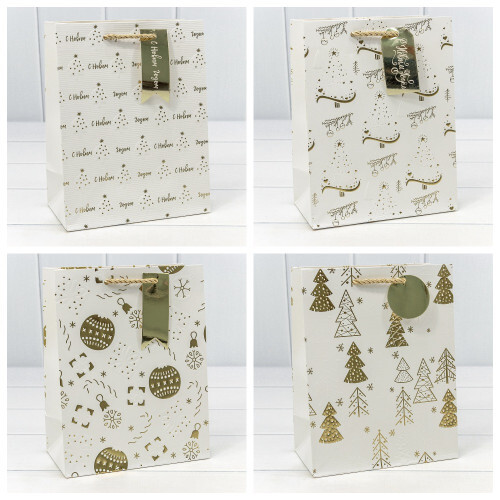 Пакет подарочный 18 х 23 х 10 см Набор 4 шт "Новый год" с тиснением (Белый)
