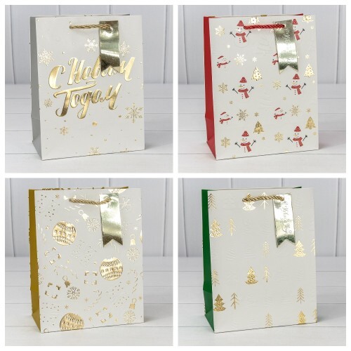 Пакет подарочный 18 х 23 х 10 см Набор 4 шт "Новый год" с тиснением (Белый)