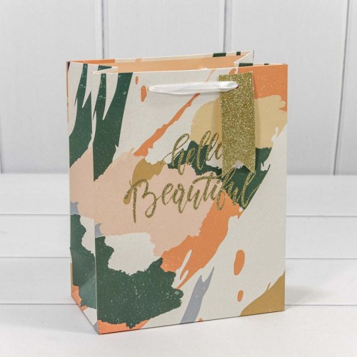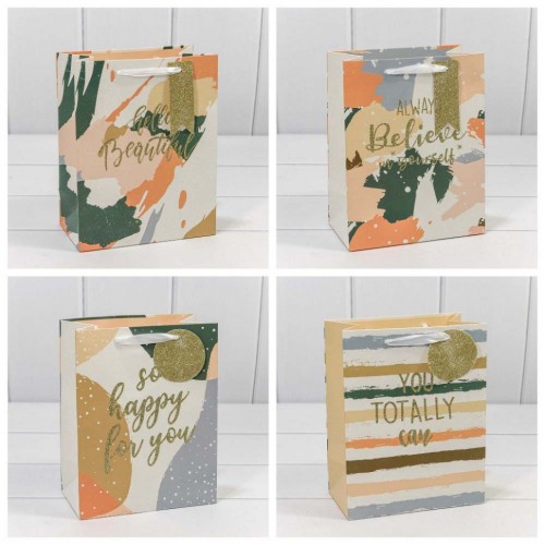 Пакет подарочный 18х23х10см "Надписи" с блёстками (Микс)