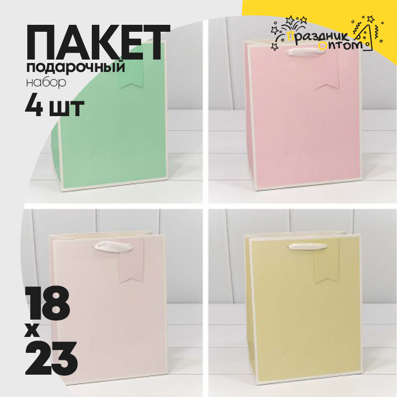 Пакет подарочный 18х23х10см Премиум однотонный в рамке (Микс)