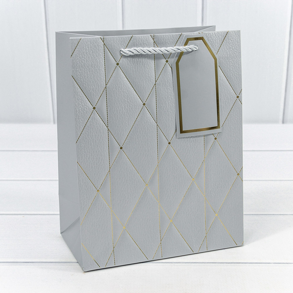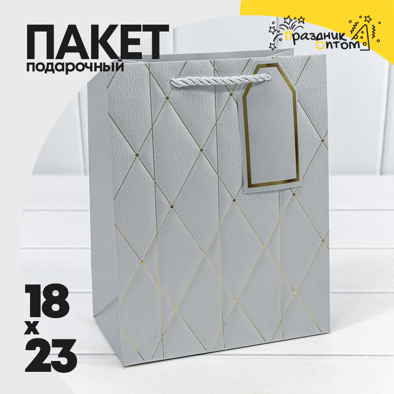 Пакет подарочный 18х23х10см "Ромбы и линии" (Серебряный)