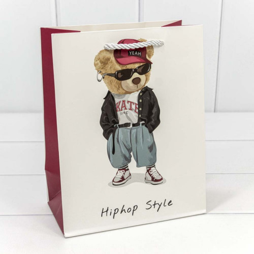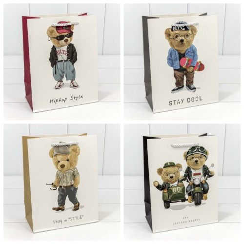 Пакет подарочный 18х23х10см "Стильные мишки" (Микс)