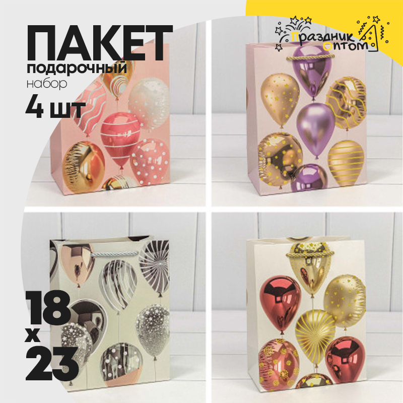 Пакет подарочный 18х23х10см "Воздушные шары " (Микс)