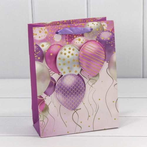 Пакет подарочный 18х24х9см "Воздушные шары" с 3D аппликацией (Микс)