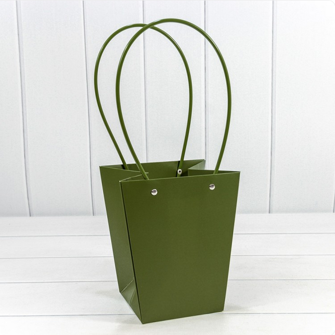 Пакет подарочный 20х17х12 Ваза для цветов (Зеленый)