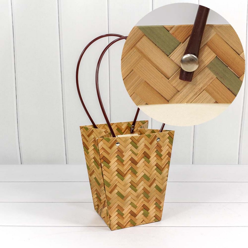 Пакет подарочный 20х17х12см Ваза для цветов "Корзина" (Плетеный)