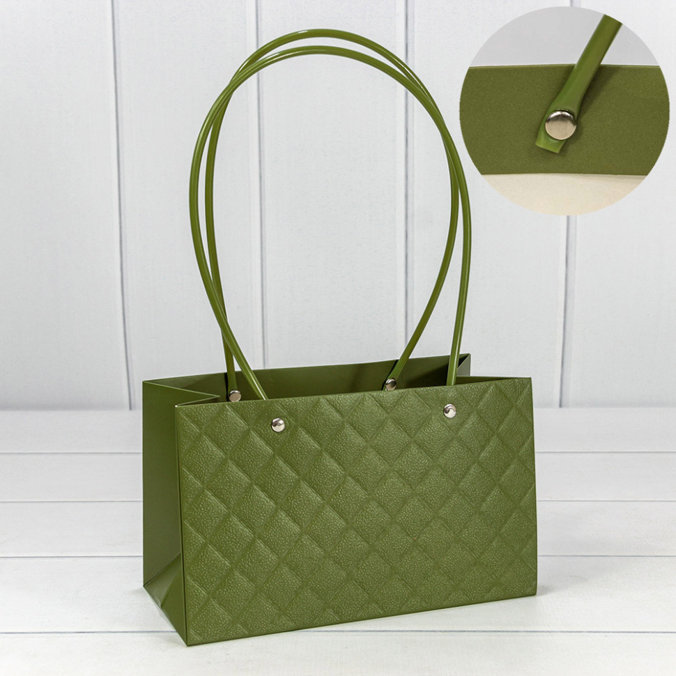 Пакет подарочный 22х13.5х10.5см Ваза для цветов "Ромбы" (Зеленый)