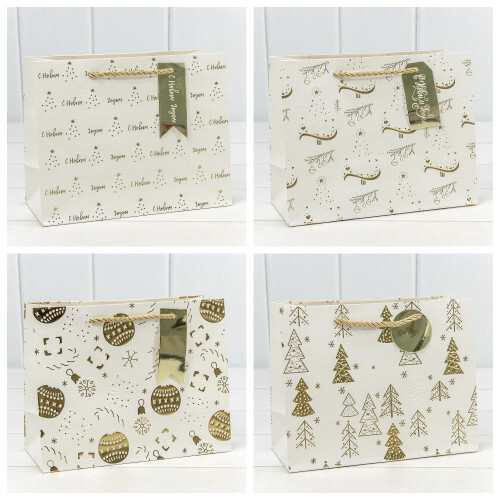 Пакет подарочный 23 х 18 х 10 см Набор 4 шт "Новый год" с тиснением (Белый)