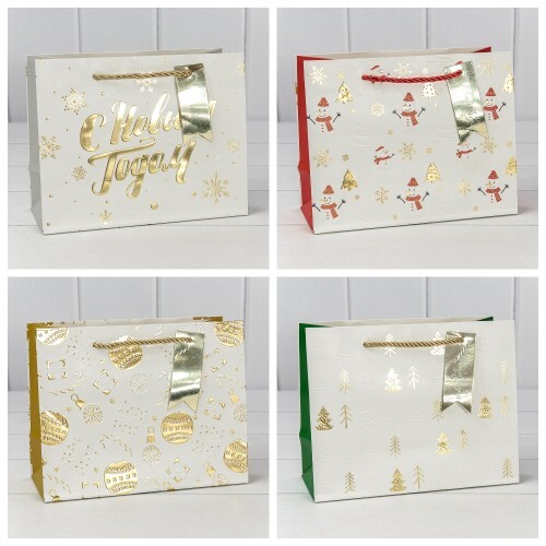 Пакет подарочный 23 х 18 х 10 см Набор 4 шт "Новый год" с тиснением (Белый)