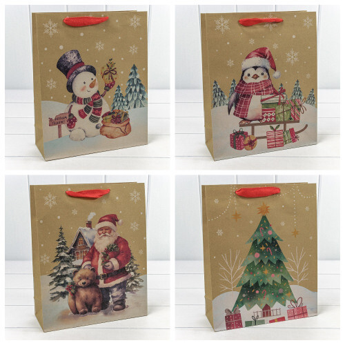 Пакет подарочный 26 х 32 х 10 см Набор 4 шт "Новогодний" (Крафт)