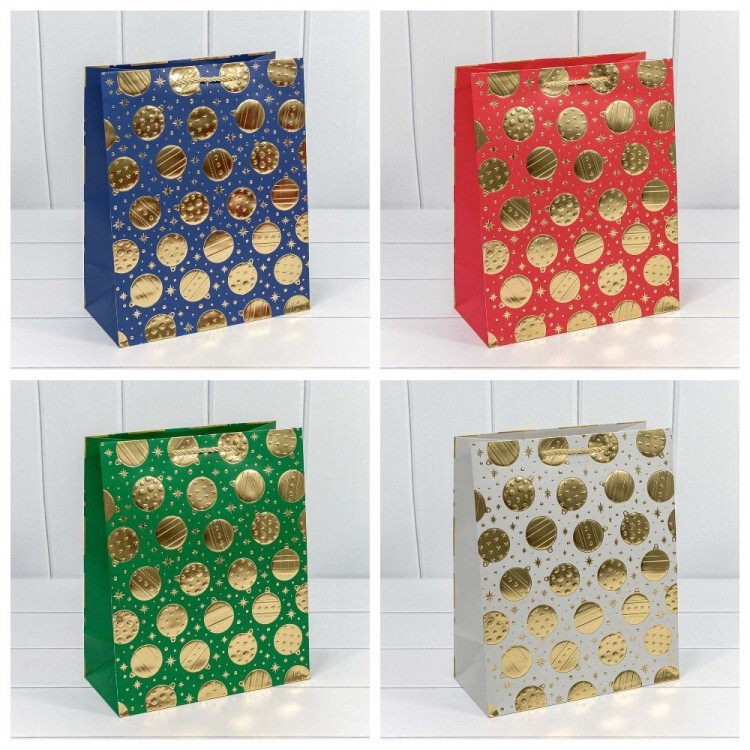 Пакет подарочный 26 х 32 х 13 см Набор 4 шт "Золотые шары" с тиснением (Микс)