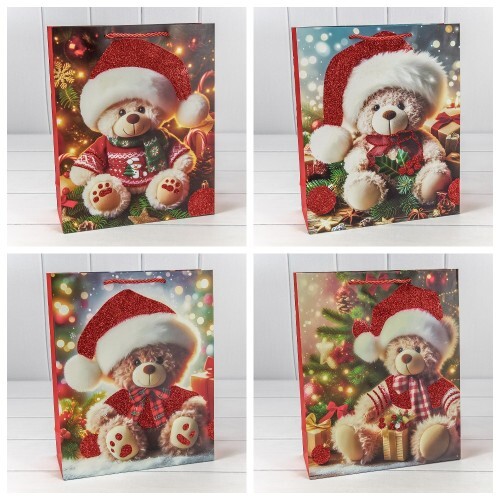 Пакет подарочный 26 х 32 х 10 см Набор 4 шт "Новый год" (Красный)