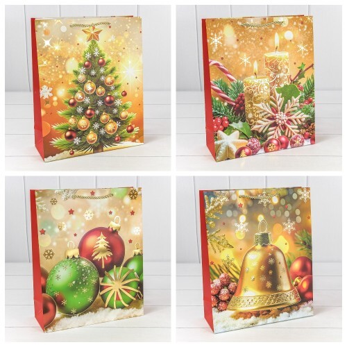 Пакет подарочный 26 х 32 х 10 см Набор 4 шт "Новый год" (Микс)