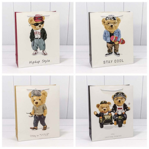 Пакет подарочный 26х32х10см "Стильные мишки" (Микс)