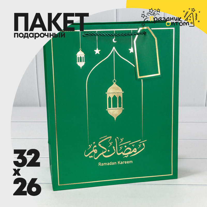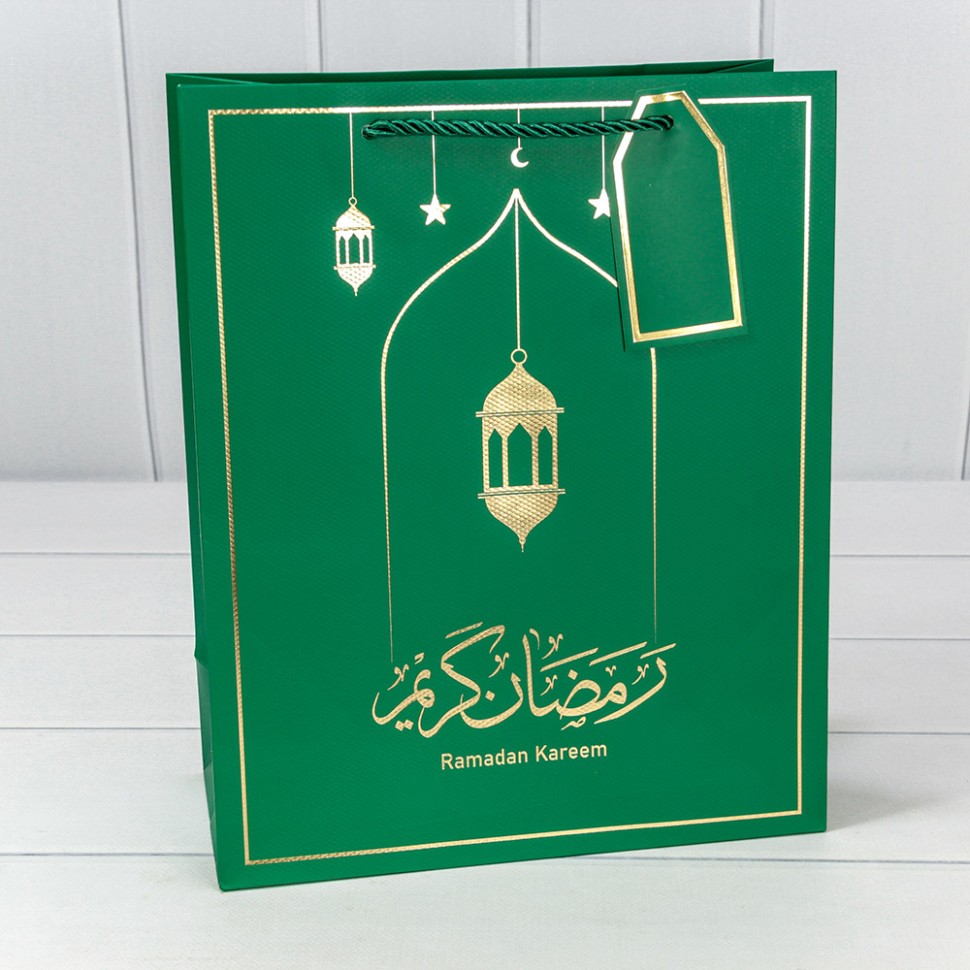 Пакет подарочный 26х32х13см Премиум "Ramadan" (Зеленый)