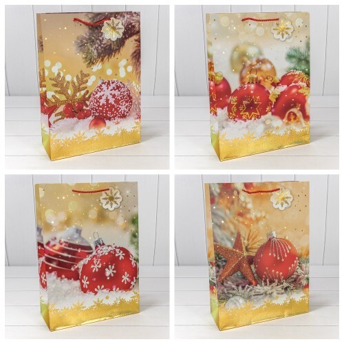 Пакет подарочный 30 х 41.5 х 12 см Набор 4 шт "Новый год" (Желтый)