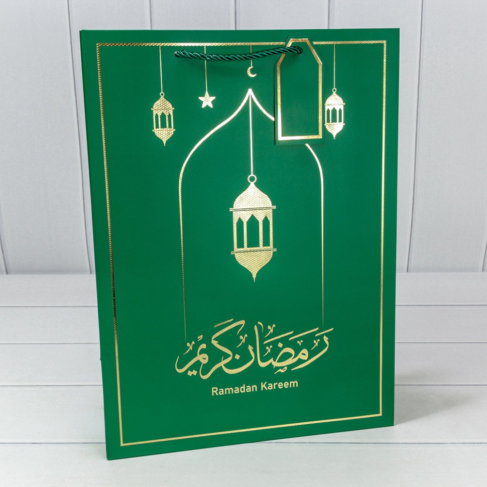 Пакет подарочный 31х42х12см Премиум "Ramadan" (Зеленый)