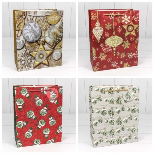 Пакет подарочный 33 х 45 х 15 см Набор 4 шт "Новый год" х блеском (Микс)