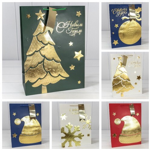 Пакет подарочный 33 х 45 х 15 см Набор 5 шт "Новый год" (Микс)
