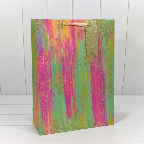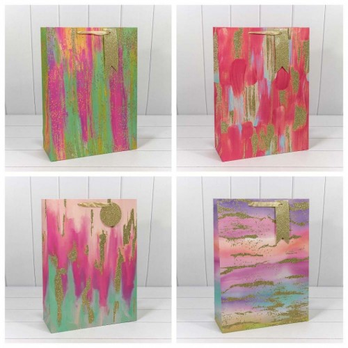 Пакет подарочный 33х45х13см "Акварель" с блёстками (Микс)