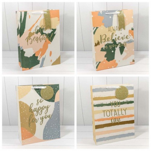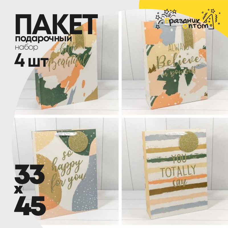 Пакет подарочный 33х45х13см "Надписи" с блёстками (Микс)