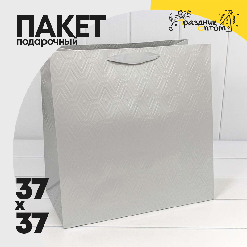 Пакет подарочный 37х37х20см Премиум "Элегант" (Серебряный)