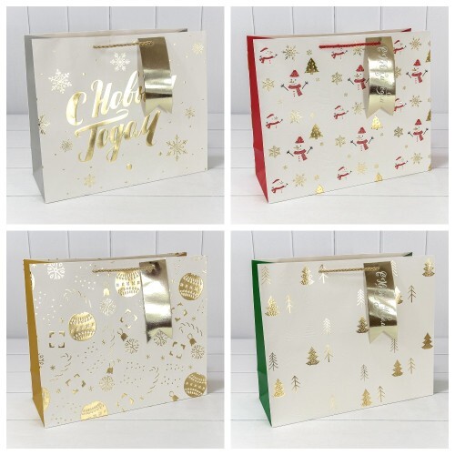 Пакет подарочный 39.5 х 33 х 15 см Набор 4 шт "Новый год" с тиснением (Белый)