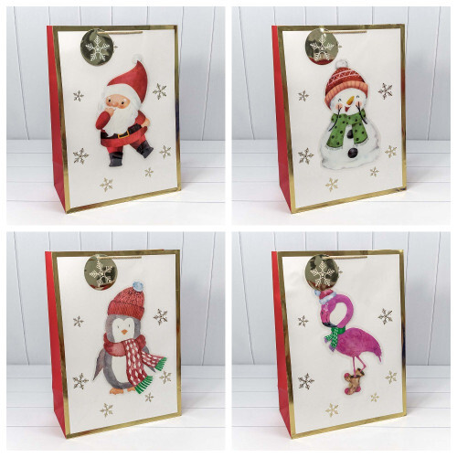 Пакет подарочный 40 х 55 х 20 см Набор 4 шт "Новый год" с 3D аппликацией (Белый)