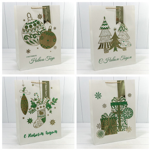 Пакет подарочный 40 х 55 х 20 см Набор 4 шт "Новый год" с тиснением (Белый)