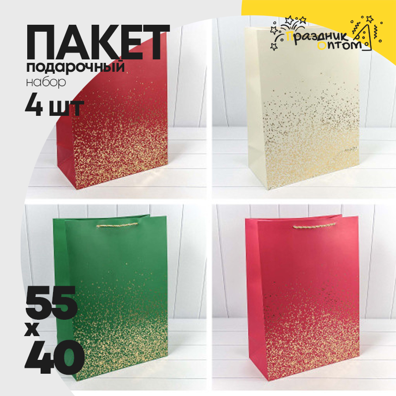 Пакет подарочный 40х55х20см Премиум "Золотые вкрапления" (Микс)