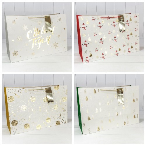 Пакет подарочный 64 х 42 х 20 см Набор 4 шт "Новый год" с тиснением (Белый)