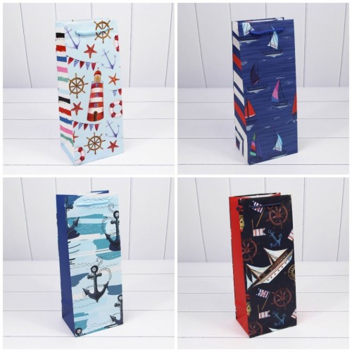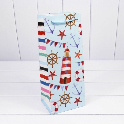 Пакет подарочный Под бутылку 14х35х11см "Морской" (Микс)
