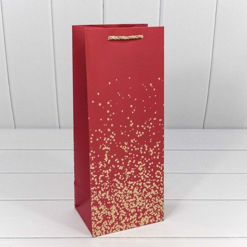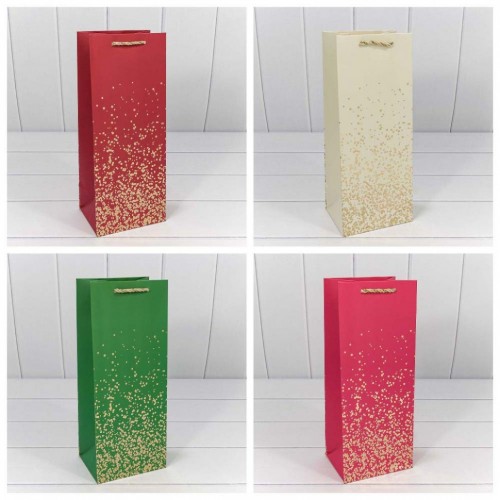 Пакет подарочный Под бутылку 14х35х11см "Золотые вкрапления" (Микс)