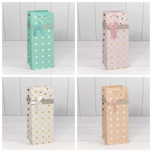 Пакет подарочный Под бутылку 14х35х14см "Леди" с тиснением (Микс)