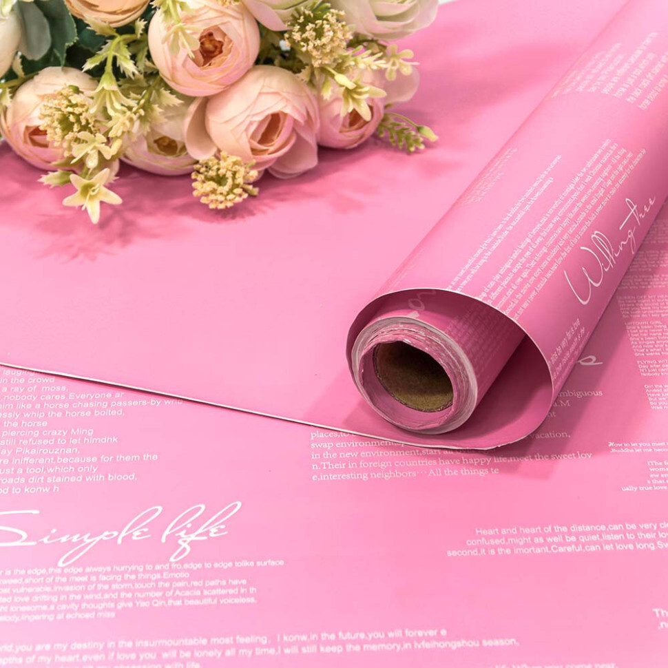 Пленка В рулоне 10 м х 58 см двухсторонняя с надписями (Розовый)