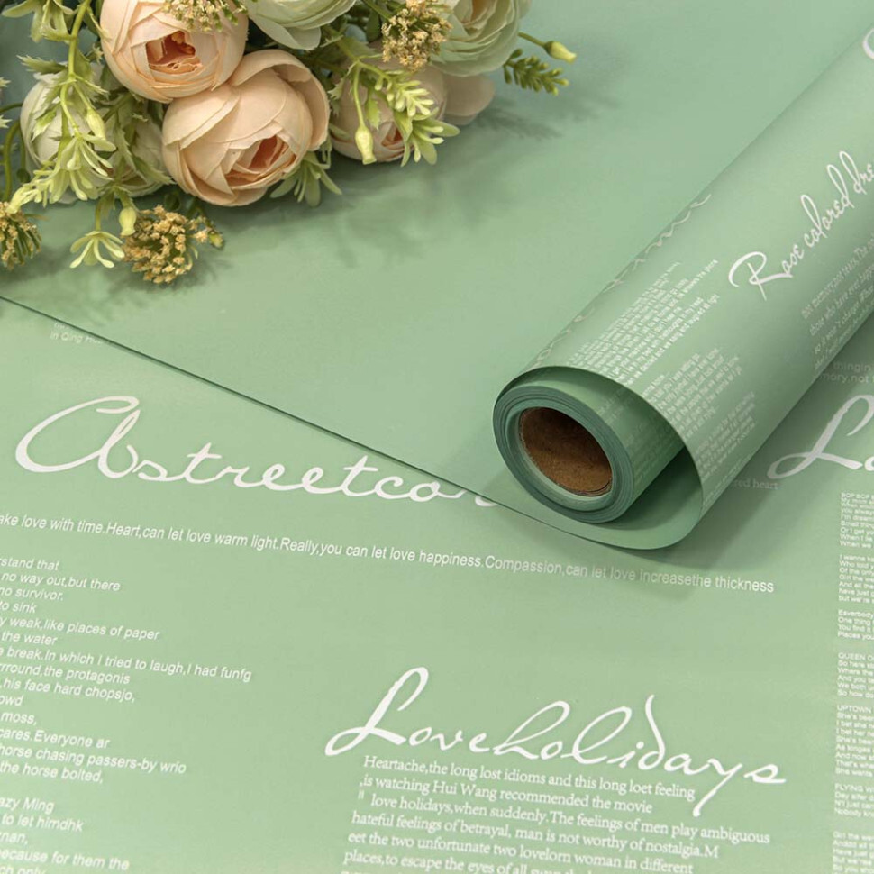Пленка В рулоне 10 м х 58 см двухсторонняя с надписями (Зеленый)