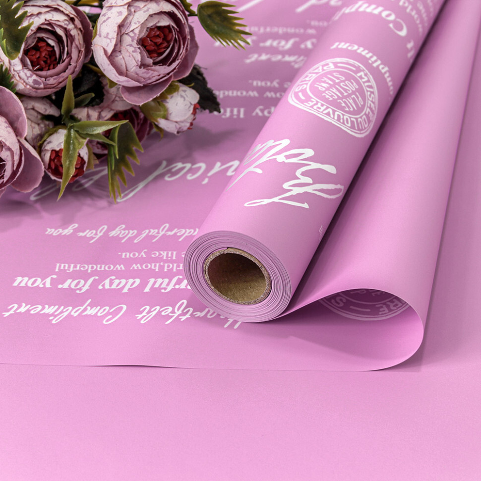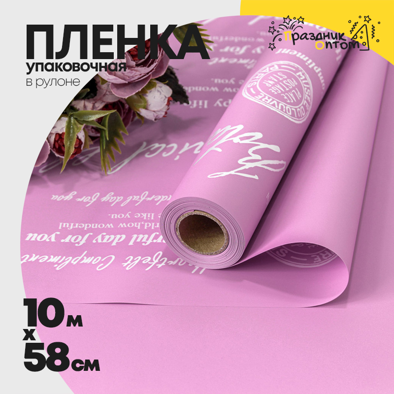 Пленка В рулоне 10 м х 58 см "Good Luck" с печатью (Розовый, Лавандовый)