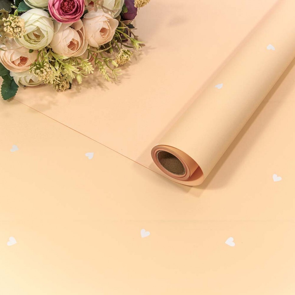 Пленка В рулоне 10 м х 58 см "Сердечки" (Персиковый)