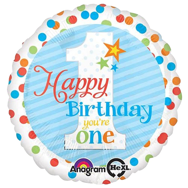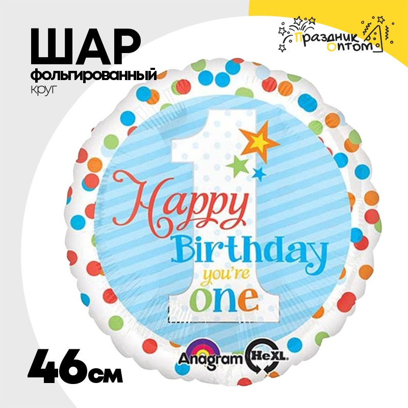 Шар Фольгированный 1 годик Горошек разноцветн (Голубой)