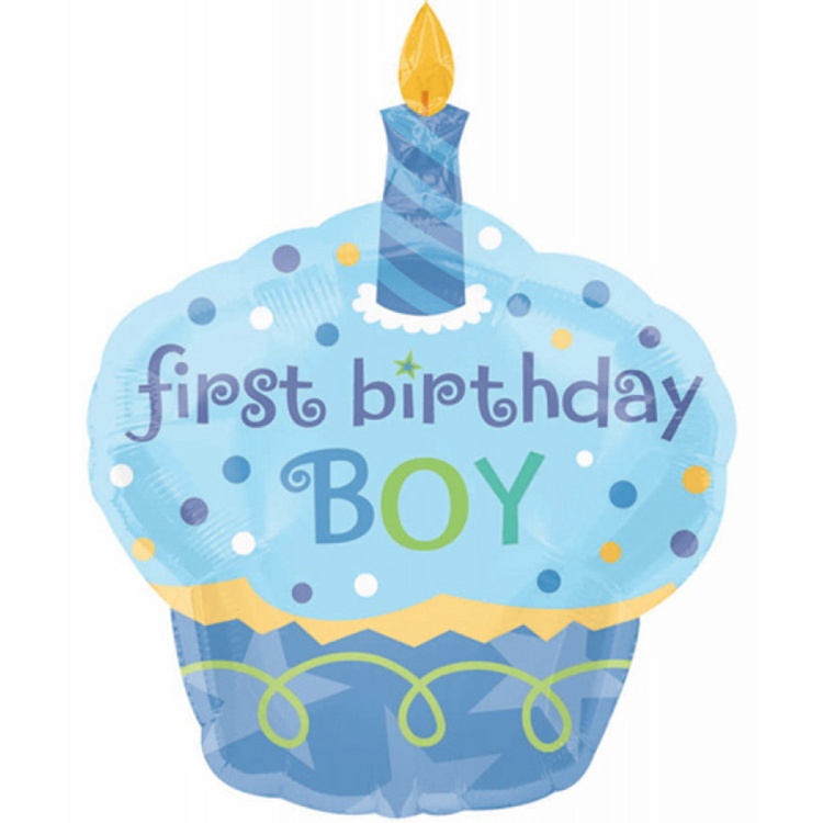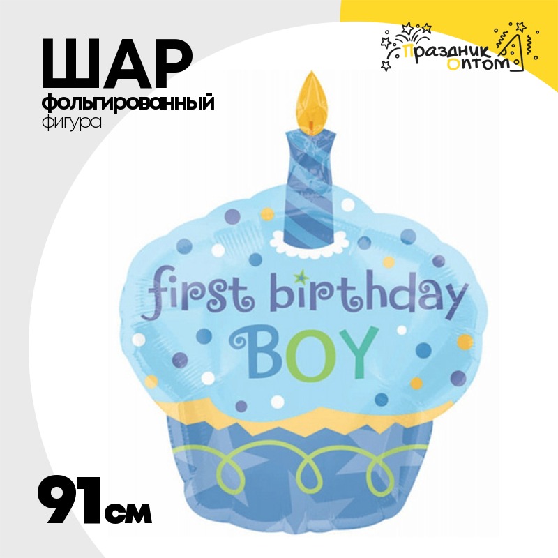 Шар Фольгированный 1-й Мальчик Кекс Свечка (Голубой)