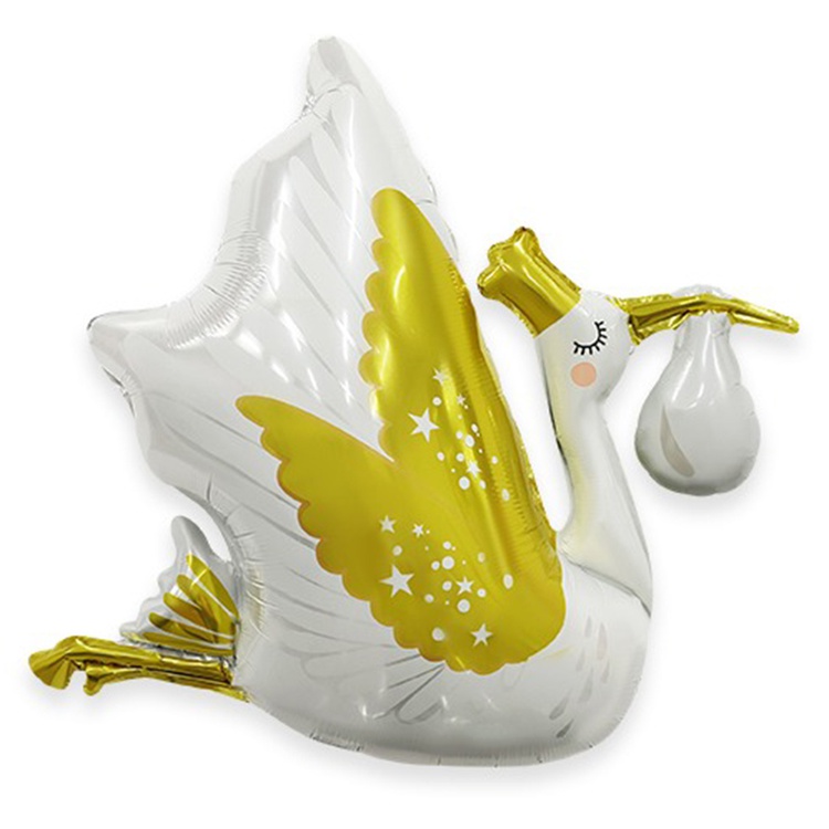 Шар Фольгированный Аист бело-золотой (Белый)