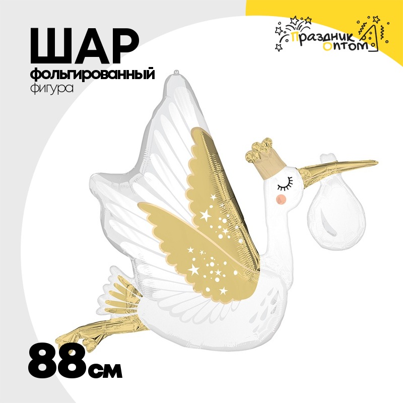 Шар Фольгированный Аист белый сатин (Белый)