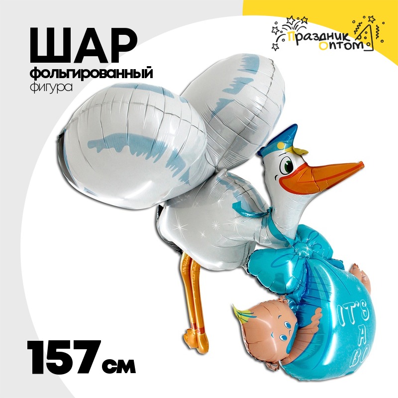 Шар Фольгированный Аист и малыш мальчик (Ассорти)