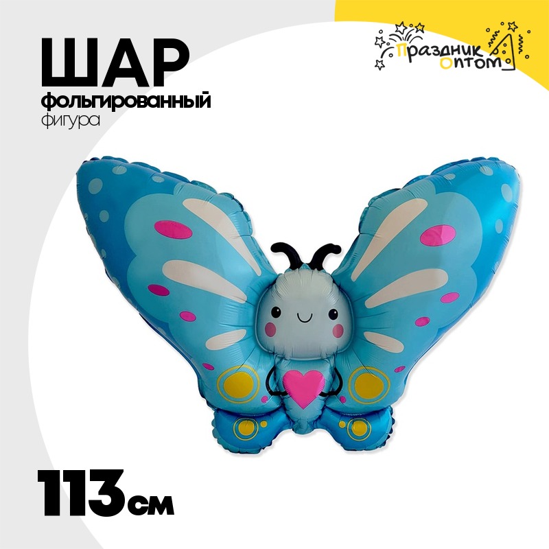 Шар Фольгированный Бабочка голубая с сердцем (Голубой)