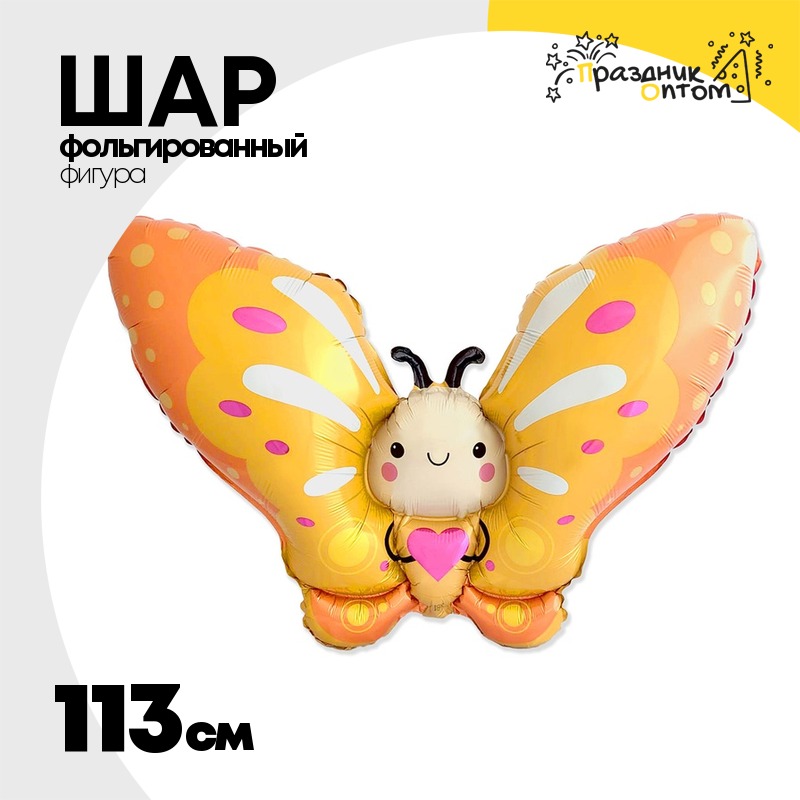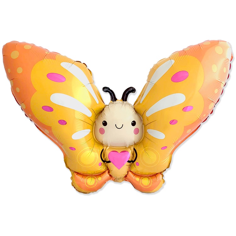 Шар Фольгированный Бабочка желтая с сердцем (Желтый)