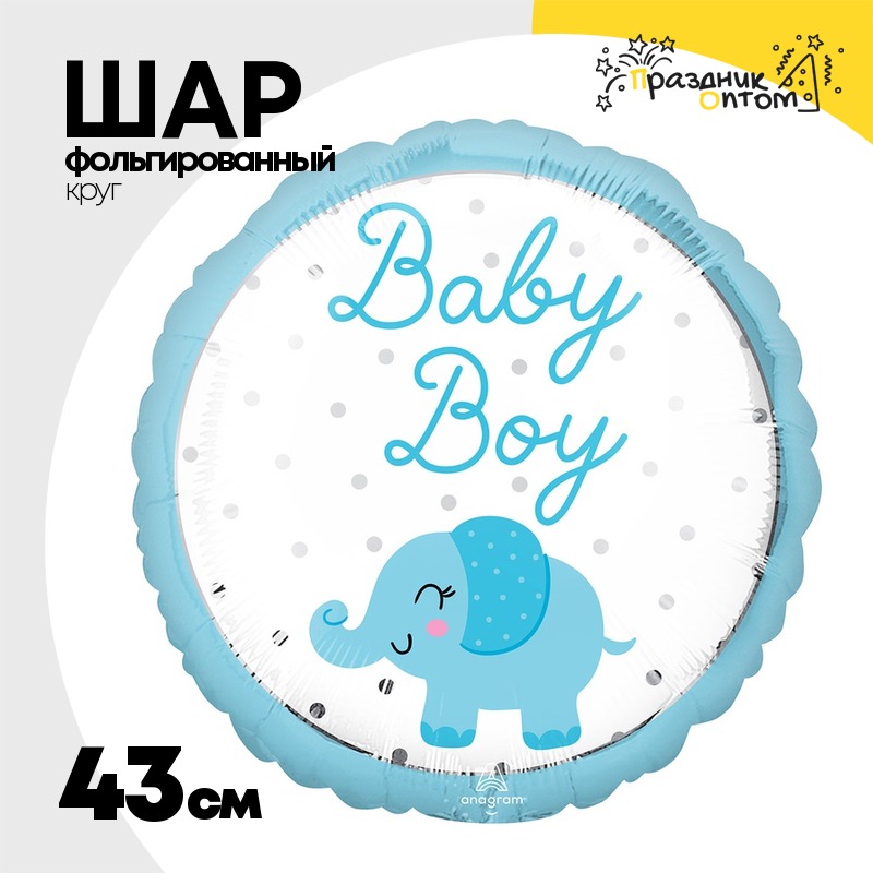 Шар Фольгированный BABY BOY Слоник голубой (Голубой)